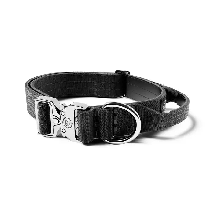 This 4cm width Combat® collar is pressure tested and equipped with a secure 6mm width Stainless Steel D Loop plus our signature rated clip for quick release and lock. Our clips have undergone rigorous pressure testing (in excess of 400lbs of pressure), giving you peace of mind when out with your dog.