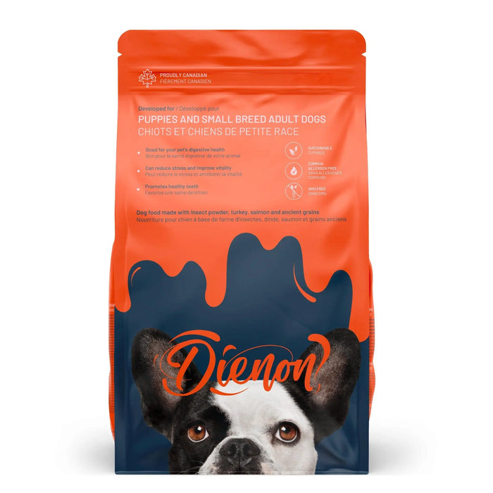 Dienon is made with high-quality and sustainable proteins (turkey, salmon and insects) along with ancient grains, fruits, and supplements to ensure the optimal development of your dog. No flour, and no fillers, just ingredients with nutritional value.