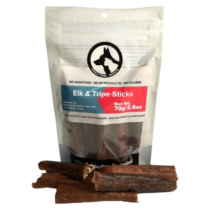Our Elk & Beef Tripe Sticks are a unique and tasty dog treat. Elk antlers are growing in popularity for dog chews because of their high nutrient content. But did you know that elk makes a great treat as well?