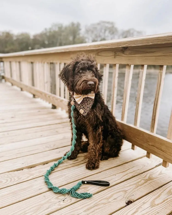 EMBER & IVORY - Macrame Leash - Jade - Spiral - Natural Leather Handle