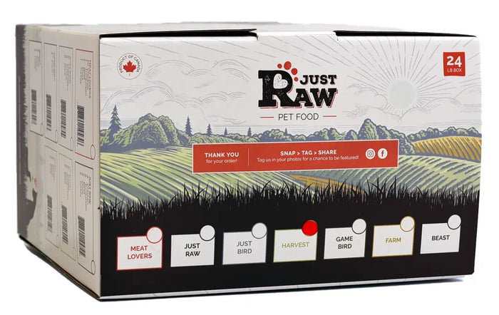 Elevate your canine's culinary experience with the Just Raw Harvest Combo raw dog food. This refined formulation harmonizes four distinct protein sources, creating a nutrient-dense profile that supports optimal canine physiology. The exceptional protein concentration nurtures muscular development while satisfying primal nutritional instincts. A distinguished selection for discerning pet owners who recognize the sophisticated palate of their four-legged companions.