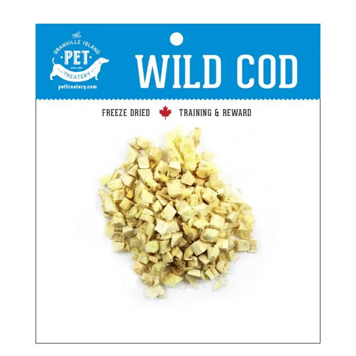 Our delicious freeze dried cod treats go through a low temperature freeze-drying process that locks in the flavours and nutrients. Dried while raw the taste is irresistible for both cats and dogs. Cod is low calorie, high protein treat that is fantastic for training. Our cod is sourced from Canadian waters and processed in federally inspected plants.