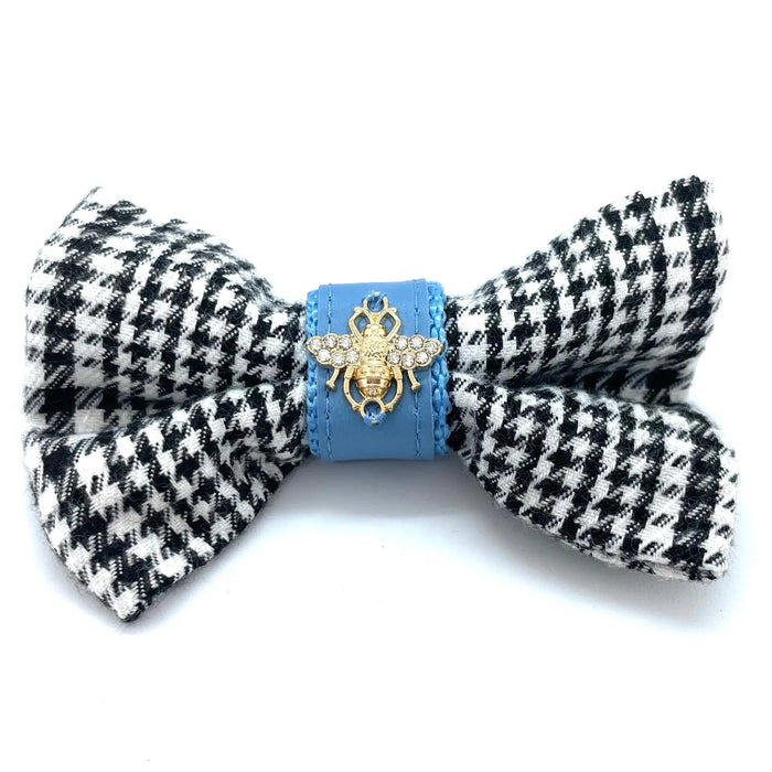 Presenting our brand new baby blue “Prince” dog bow tie from our “Prince” collection. Made with high quality poly rayon houndstooth fabric and rose gold metal hardware. This bow tie will make your puppy shine in any occasion.